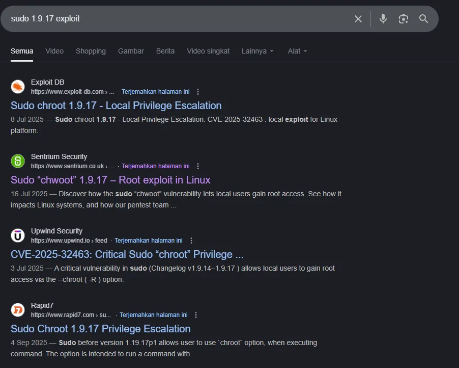 ike@expressway:~$ sudo --versionSudo version 1.9.17Sudoers policy plugin version 1.9.17Sudoers file grammar version 50Sudoers I/O plugin version 1.9.17Sudoers audit plugin version 1.9.17Try to find public exploits.